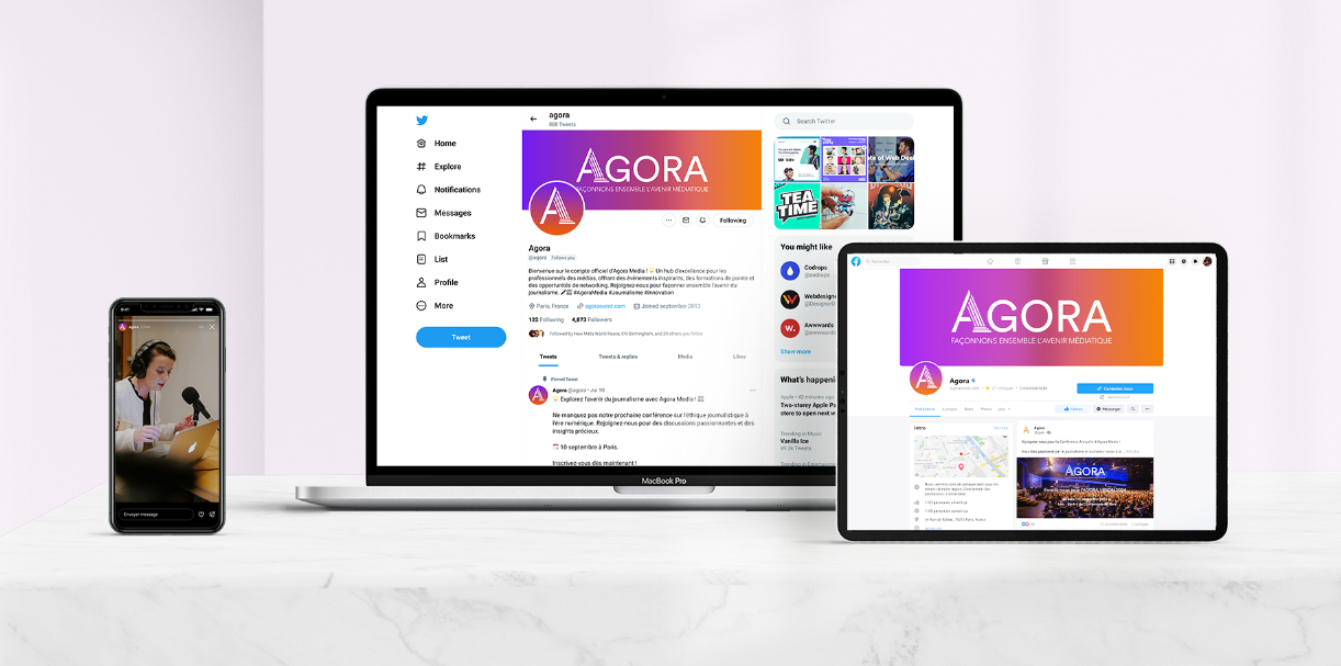 Agora est une entreprise événementielle spécialement conçue pour les journalistes. Notre mission comprenait la création d'une identité visuelle marquante, l'élaboration de contenus interactifs et la mise en place de stratégies de communication efficaces pour promouvoir notre initiative.